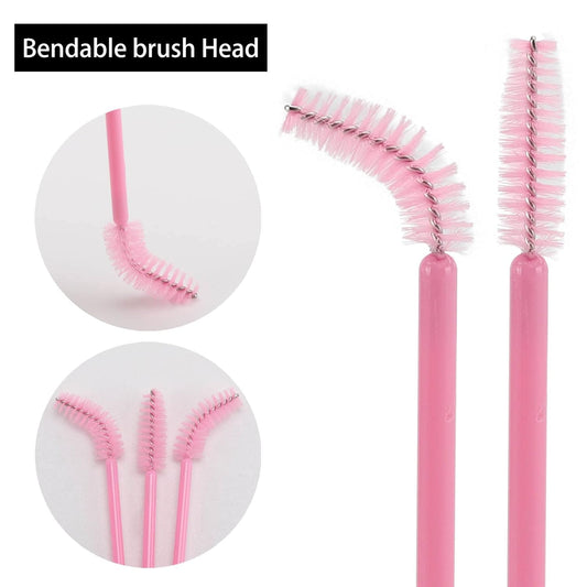 300 Disposable Spoolies Mascara Eyelash Wands Brush Applicator for Eyelash Extension Eyebrow and Makeup Pink